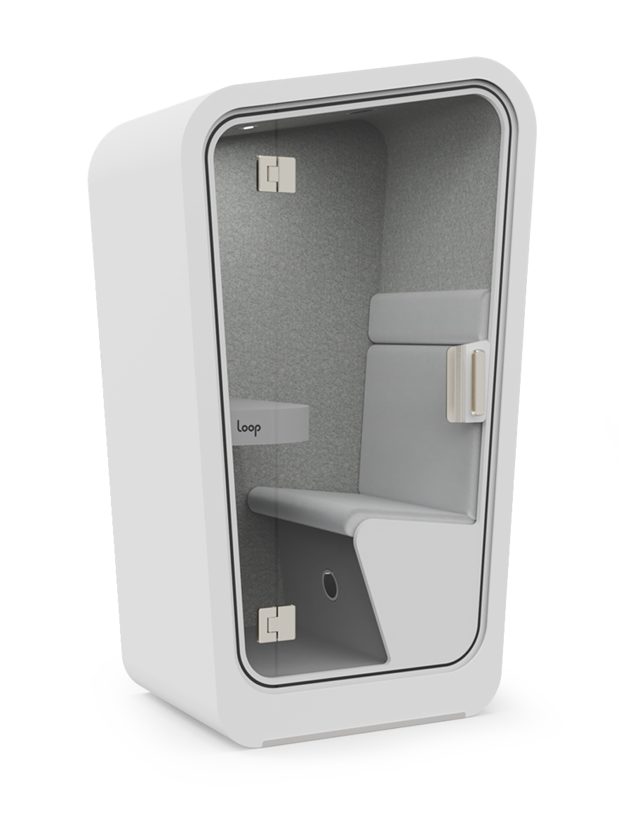 The Loop Solo QS offers a simple, elegant, flexible solution to distractions and noise in open concept offices. With the same great form and function as our Loop Solo, our QS model features an all white exterior with a soft grey interior. Neutral finishes and a minimalist color palette makes QS ideal for any interior environment.